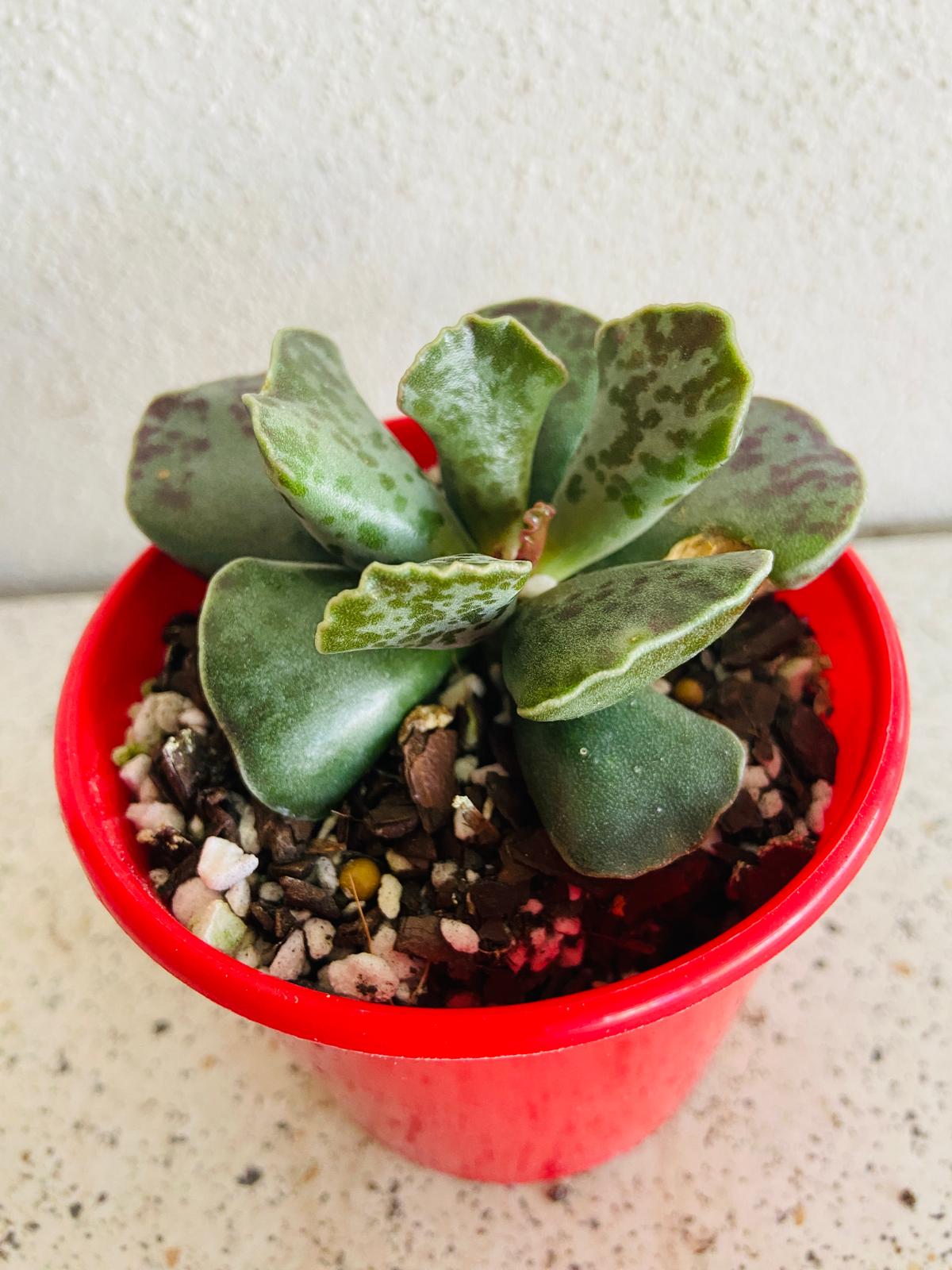 The succulent plant housed in the red pot comes in a 80mm diameter container. While the image provides a representative depiction of what you will receive, but may vary slightly because no two succulents are the same.
