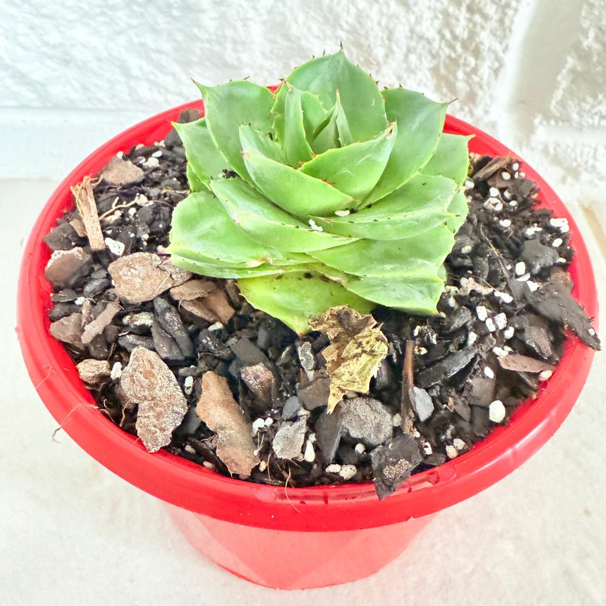 The succulent plant housed in the red pot comes in a 130mm diameter container. While the image provides a representative depiction of what you will receive, but may vary slightly because no two succulents are the same.