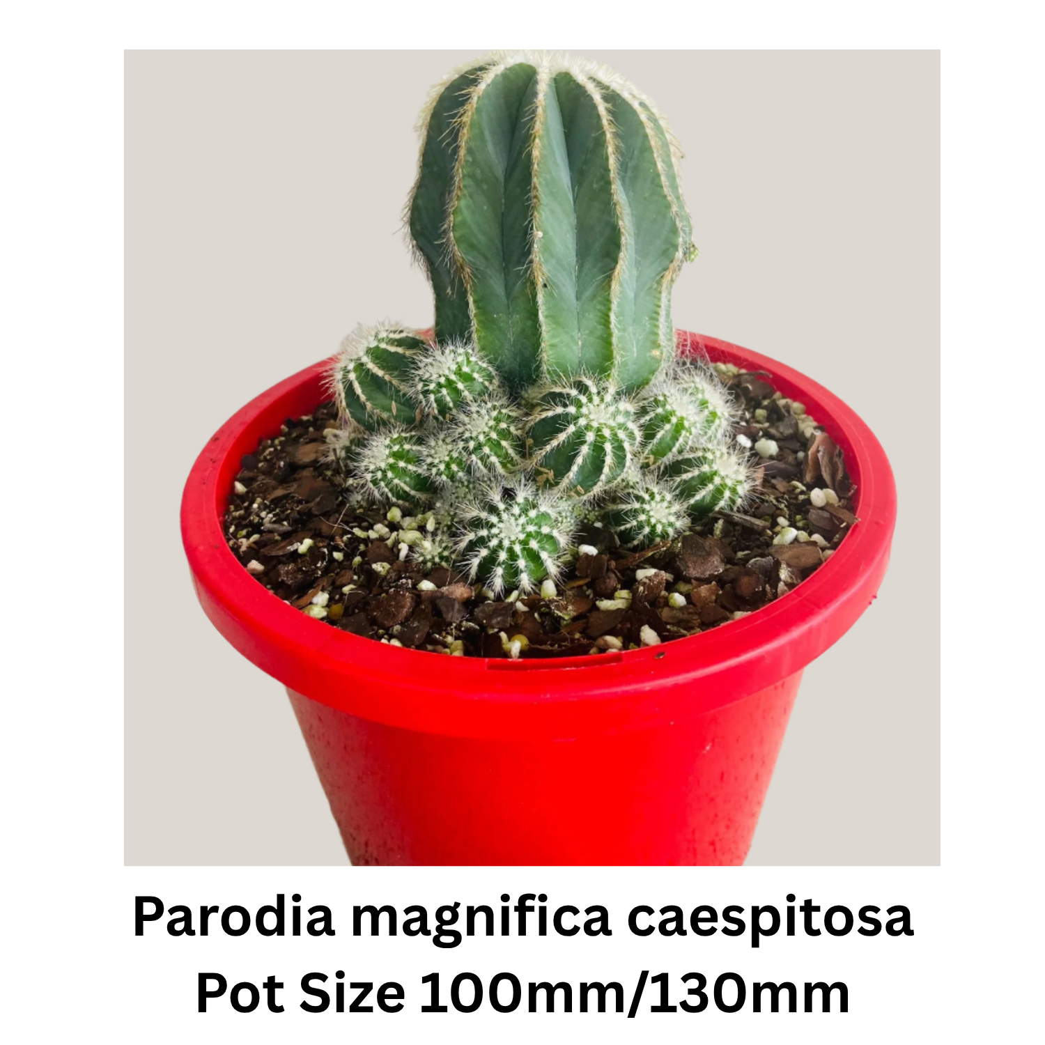 Parodia magnifica caespitosa – Clustering blue-green cactus forming striking rounded mounds.