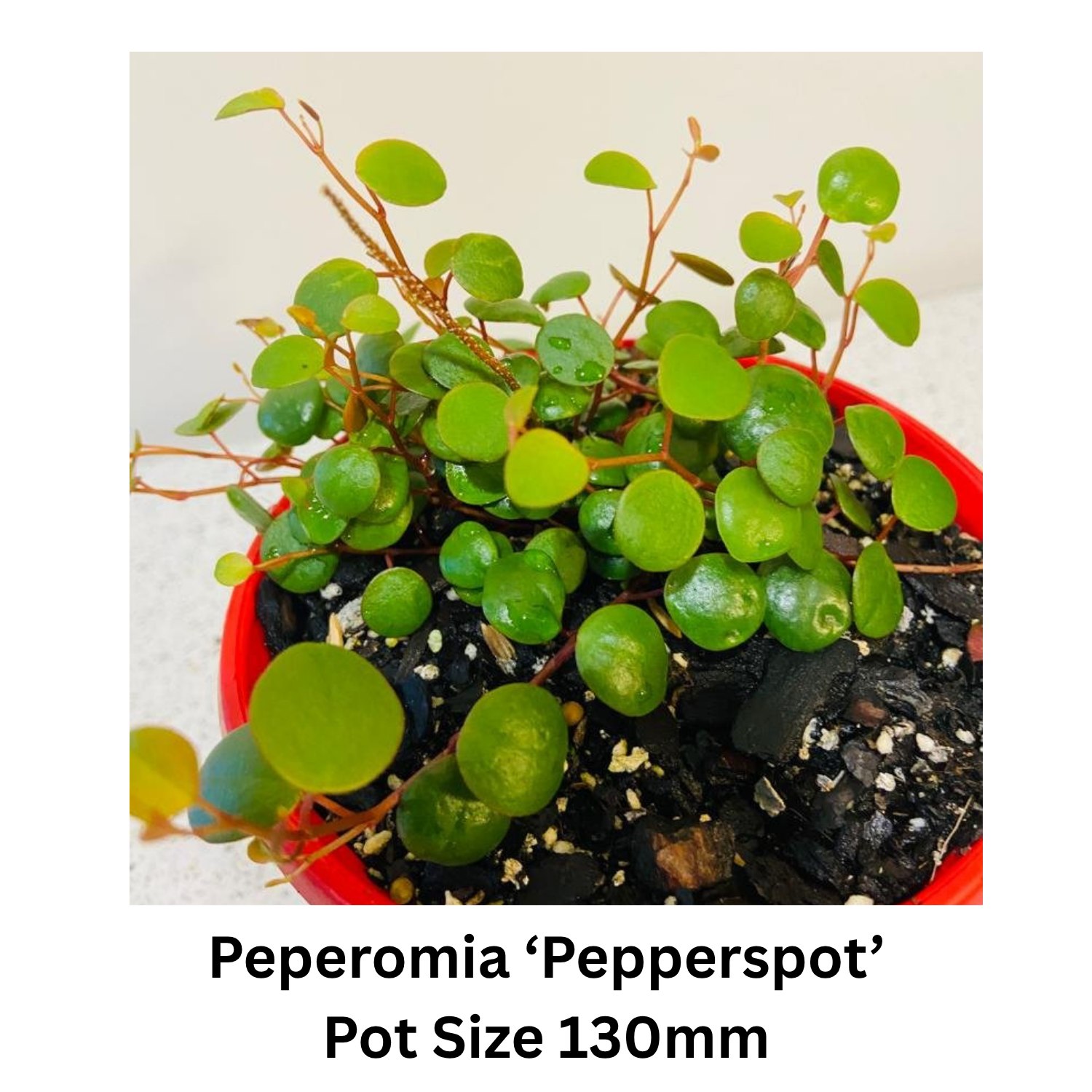 Peperomia ‘Pepperspot’ – Glossy round leaves on fine red stems; compact and lush.