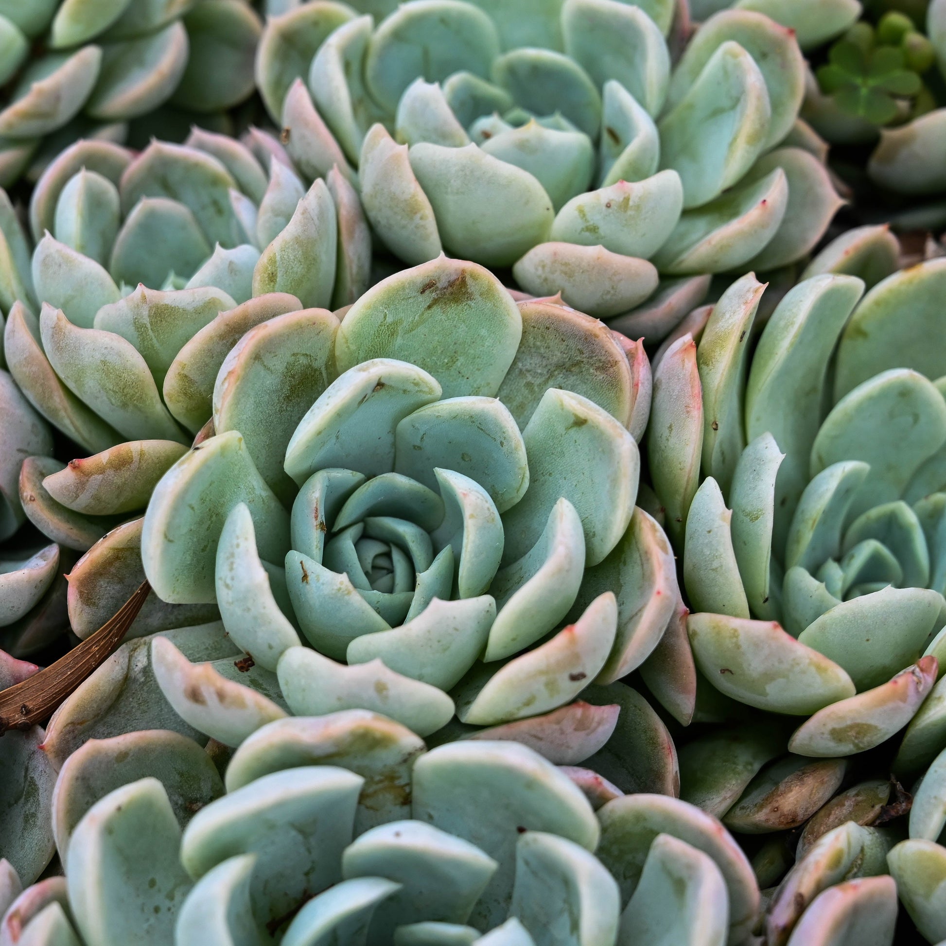 Sometimes referred to as Echeveria Whitening, I suppose because of its very light colour. Its a beautiful echeveria, forming small plump clumps of whitish/grey rosettes. Apparently gets used a lot in wreaths. Does not tolerate frost and grow in morning sun position.