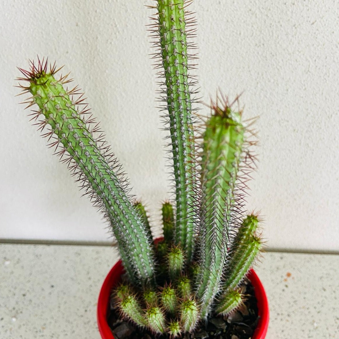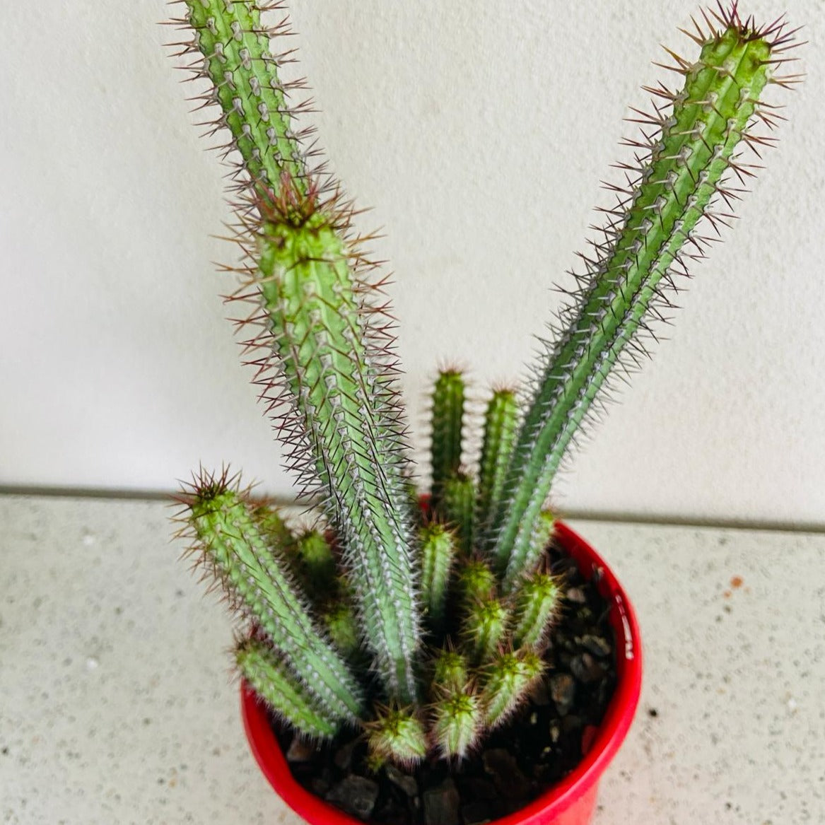The Euphorbia baioensis is a rare and fascinating succulent native to Kenya, admired for its unique spiny, columnar stems. It grows in dense clumps of slender, upright stems covered with sharp spines, giving it a striking architectural appearance. In the right conditions, it produces small yellow-green flowers that add extra charm to its bold structure. This unusual plant is highly sought-after by collectors for its dramatic form and easy-care nature.