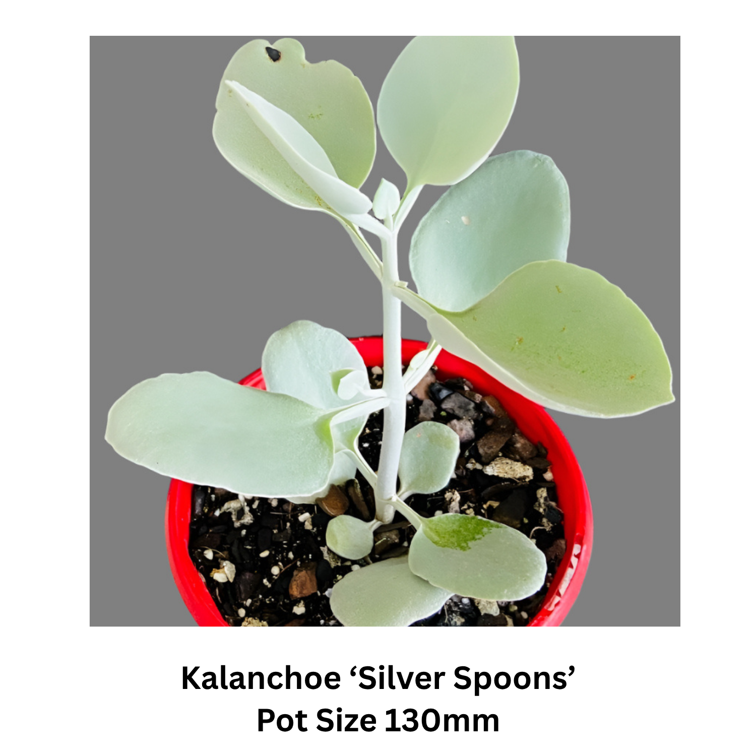 Kalanchoe ‘Silver Spoons’ – Velvety, silvery-grey leaves with a soft texture and rounded spoon shape.