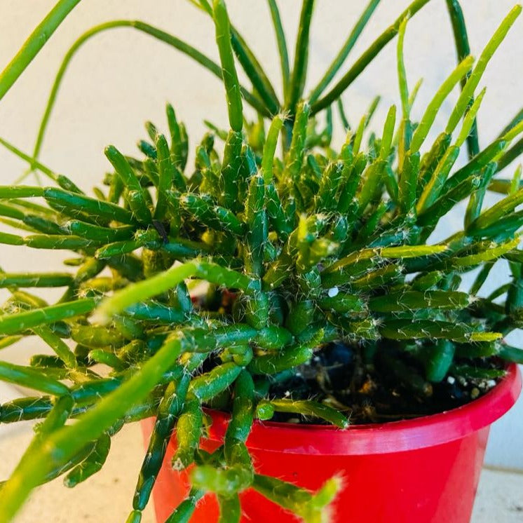A fascinating member of the Rhipsalis genus, "Red Coral" boasts an exotic charm and unique characteristics.Rhipsalis Red Coral is a cultivar or variety of Rhipsalis that is likely prized for its striking red or coral-colored stems. These cacti are known for their unique appearance and are often sought after for their vibrant and eye-catching colors.